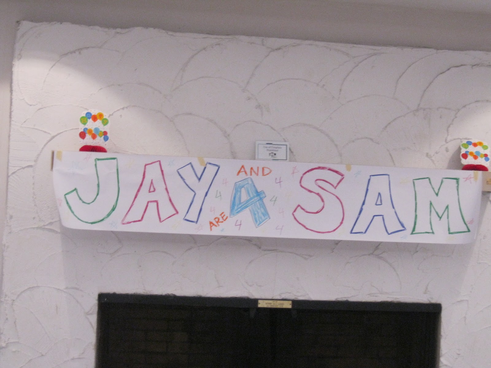 It's a little tough to tell in this pic because he was so squirmy, but his hair is easily 2 inches long. And still standing on end, straight out from his head. On New Year's Eve, I finally gave in and buzzed him again. Short. Sweet. And sticking out in all directions once again.